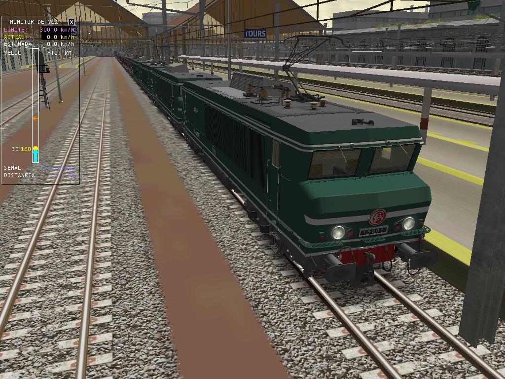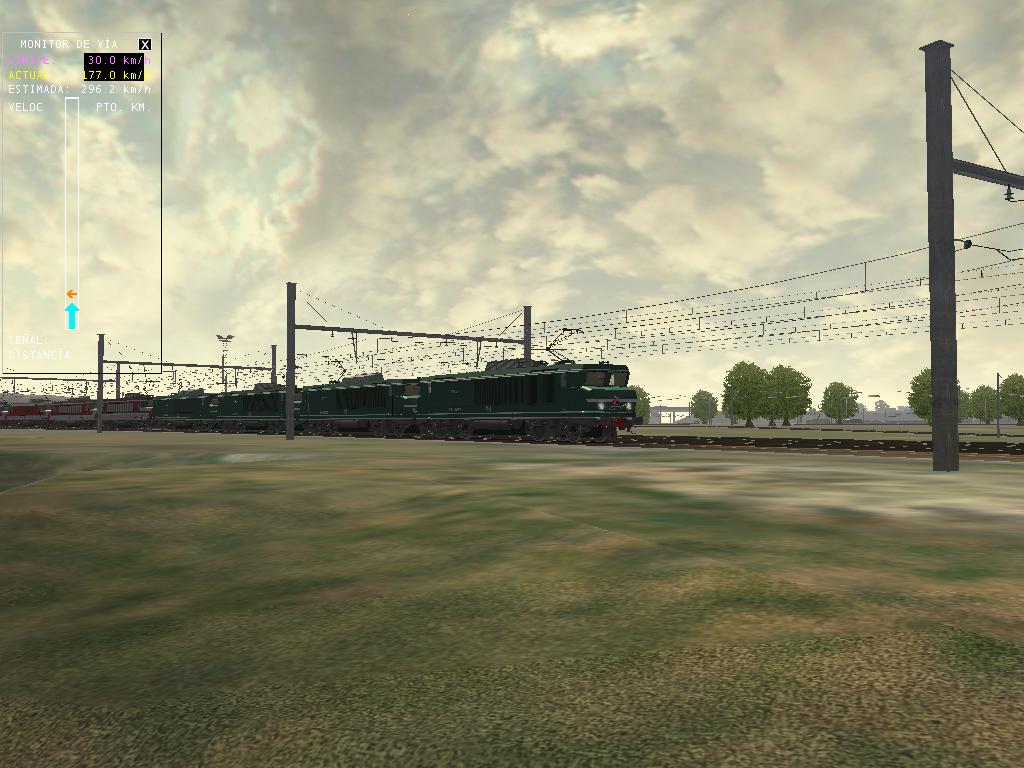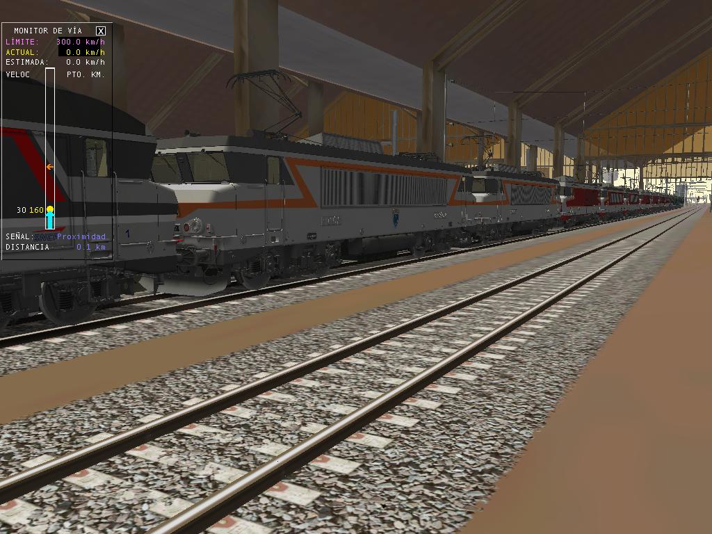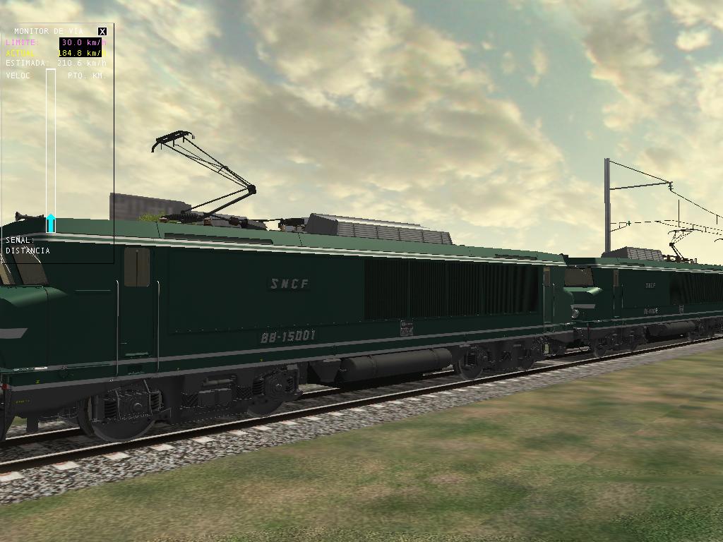 Aquí tenemos las capturas. El MsTS no se ha colgado, iba algo lentillo, pero no se apreciaba demasiado, aunque el viaje no ha sido lo suficiente largo para comprobarlo, pero en mi ordenador está clara la situación. Quizá en una ruta más cargada... Lo que he hecho es poner todas las locomotoras de cada serie de este desarrollador: las BB-15000, las BB-7200 y las CC-72000, una de cada numeración que había, con la BB-15001 en cabeza.