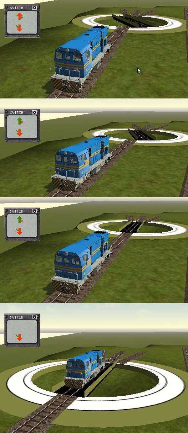 Llegamos y nos encontramos el puente cruzado, con G lo giramos, se alinea y podemos pasar sin problemas. por supuesto, si no lo giramos descarrila.