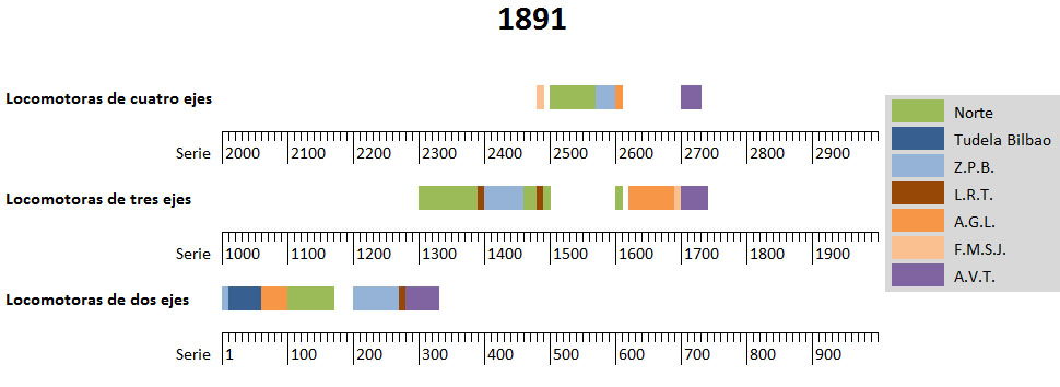 El rango 1001-1999 se reservaba para las locomotoras de tres ejes.