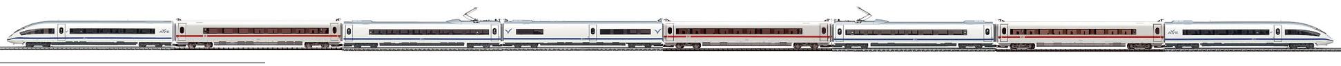 Para simplificar, digamos que se trata de un tren tipo serie 100 con dos cabezas tractoras, sólo que las cabezas tractoras están distribuidas a lo largo de cuatro coches.