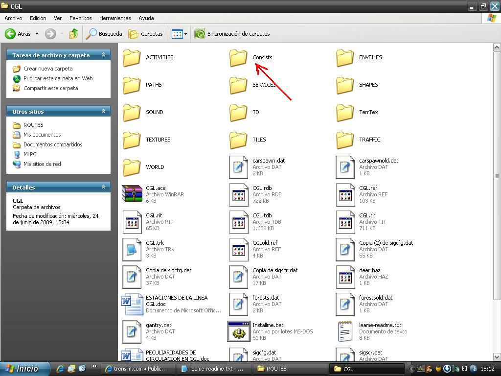 Copiar los consists a la carpeta "Trains\Consists" (están dentro de CGL\Consists)