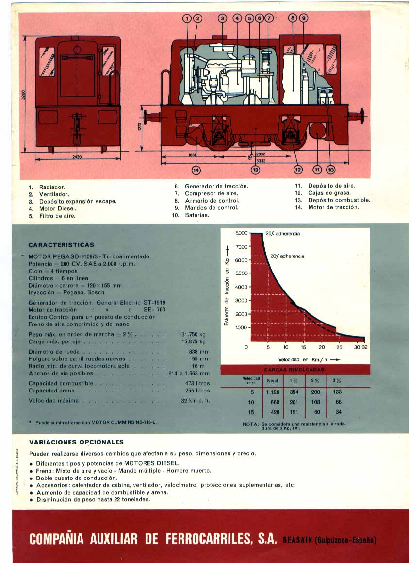 portu escribió:Veamos, quisiera solicitaros vuestra ayuda, se trata de un tractor de maniobras usado en AHV entre los 60´s y 80´s fabricado por GE con licencia CAF ...creo... y de los cuales cierto numero fue fabricado en vía métrica mientras unos diez de ellos lo fueron en ancho ibérico, y la verdad es que hay muy poca documentación....eso si, creo haber visto uno similar en la propia fabrica de CAF en Beasain (color rojo) aparte del existente en el museo vasco del ferrocarril y en el de la minería de gallarta (ambos amarillos y en métrica), yo realmente estaría interesado en la versión de ancho ibérico que anduvo en la fabrica de Ansio (AHV) y sobre todo en su interior y zona baja de la maquina.