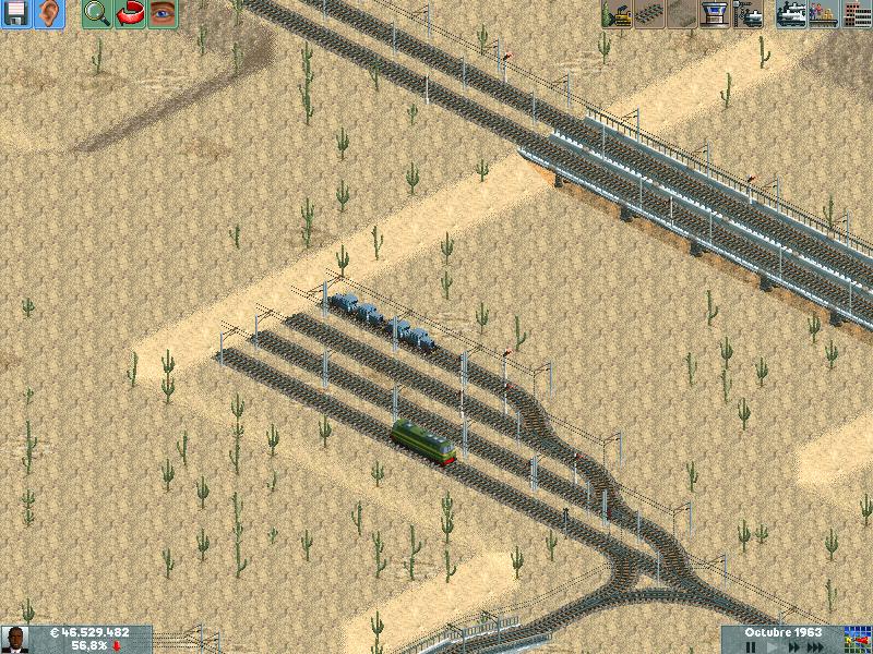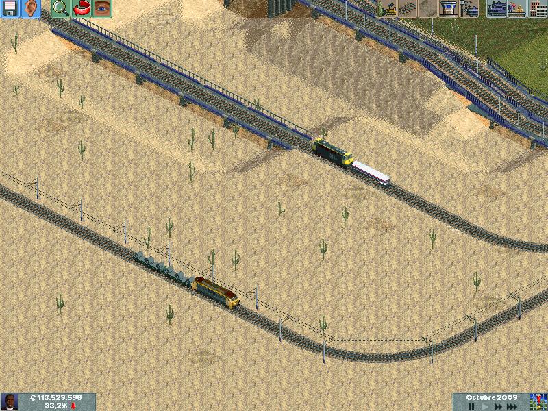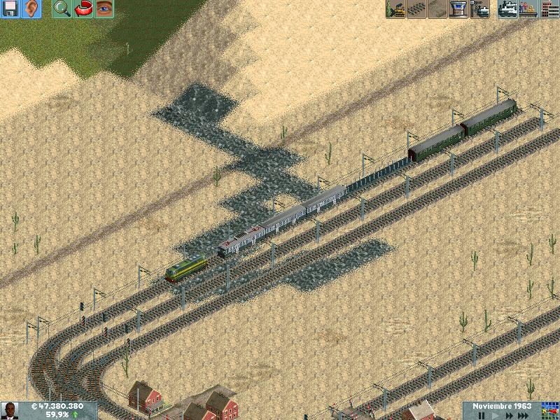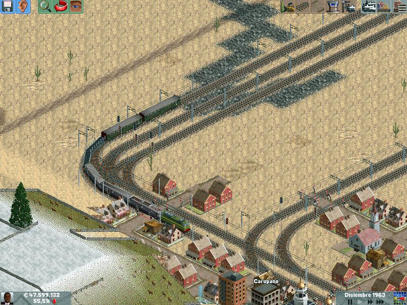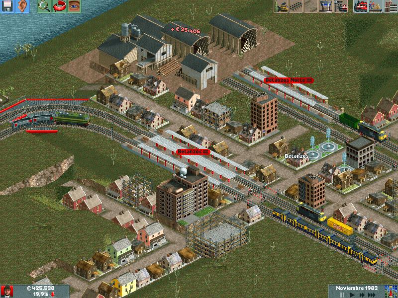 Os explico, me he creado un mapa totalmente llano, con muchas industrias. Para ver hasta donde podría llegar y a cuantos trenes podría hacer jaja. Lo empece en el año 1995 justo, con ciudades pequeñas apenas de 500 habitantes. Ahorra llevan algunas mas de 60.000 habitantes, y lógicamente las estoy encerrando para que no crezcan porque madre mía. Llevo unos 130 trenes, 14 aviones y unos 20 tranvías.