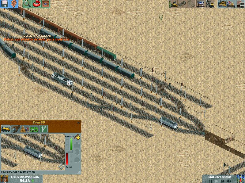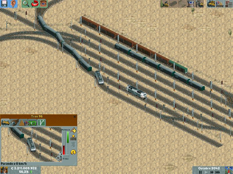 Os explico, me he creado un mapa totalmente llano, con muchas industrias. Para ver hasta donde podría llegar y a cuantos trenes podría hacer jaja. Lo empece en el año 1995 justo, con ciudades pequeñas apenas de 500 habitantes. Ahorra llevan algunas mas de 60.000 habitantes, y lógicamente las estoy encerrando para que no crezcan porque madre mía. Llevo unos 130 trenes, 14 aviones y unos 20 tranvías.