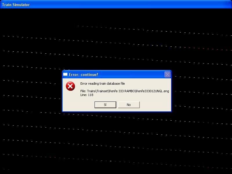 1.foto: error que da al entrar cuando he instalado un tren que necesita parche