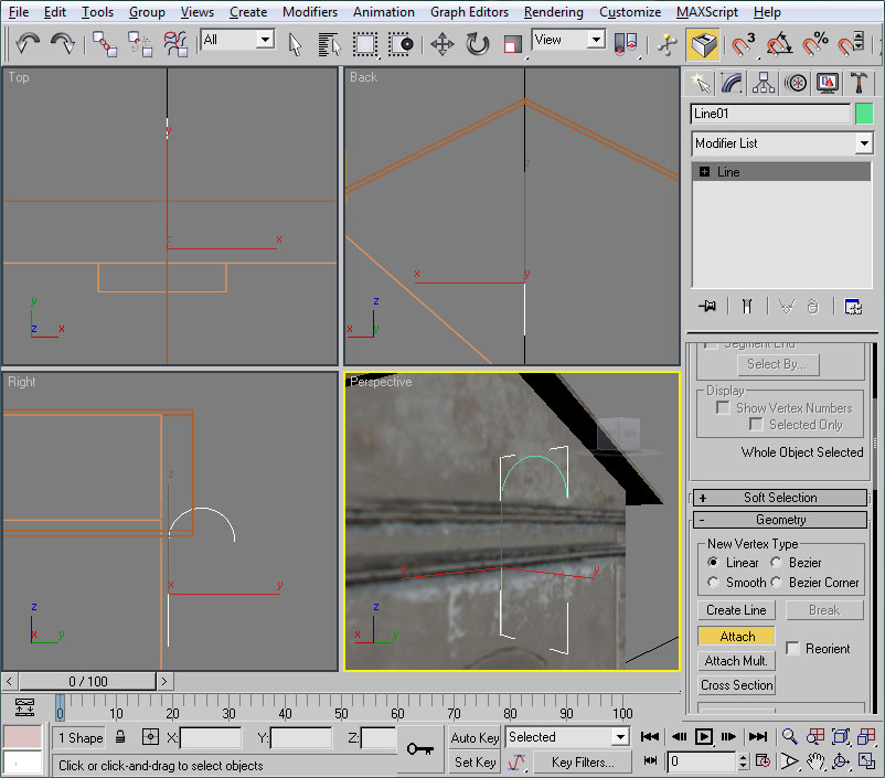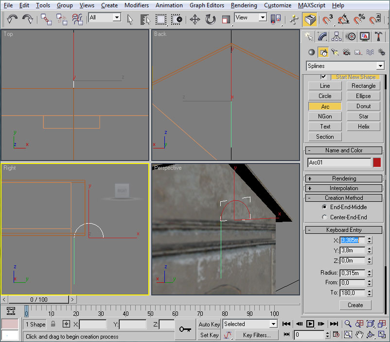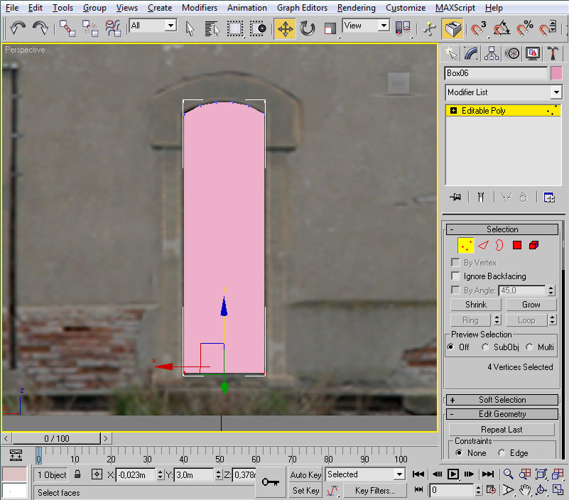 Y mediante "Select and Move" los desplazaremos hacia arriba, usando la flecha verde, hasta que se ajusten al contorno del arco de la ventana: