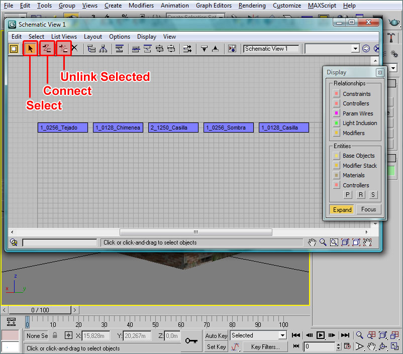 Una vez en posición, y mediante "Select and Scale" procederemos a dar un tamaño al cubo semejante a la ventana. El procedimiento será semejante al anterior, jugando con las dos flechas.