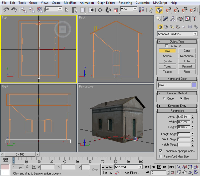 Vamos a mejorar la casilla, proporcionándole un nuevo cuerpo más detallado que usaremos para las distancias "cortas", manteniendo el cuerpo simple que hemos creado para las distancias "largas". Es decir, dotaremos a un mismo elemento de más de un LOD, con mallas diferentes para cada uno de los LODs.