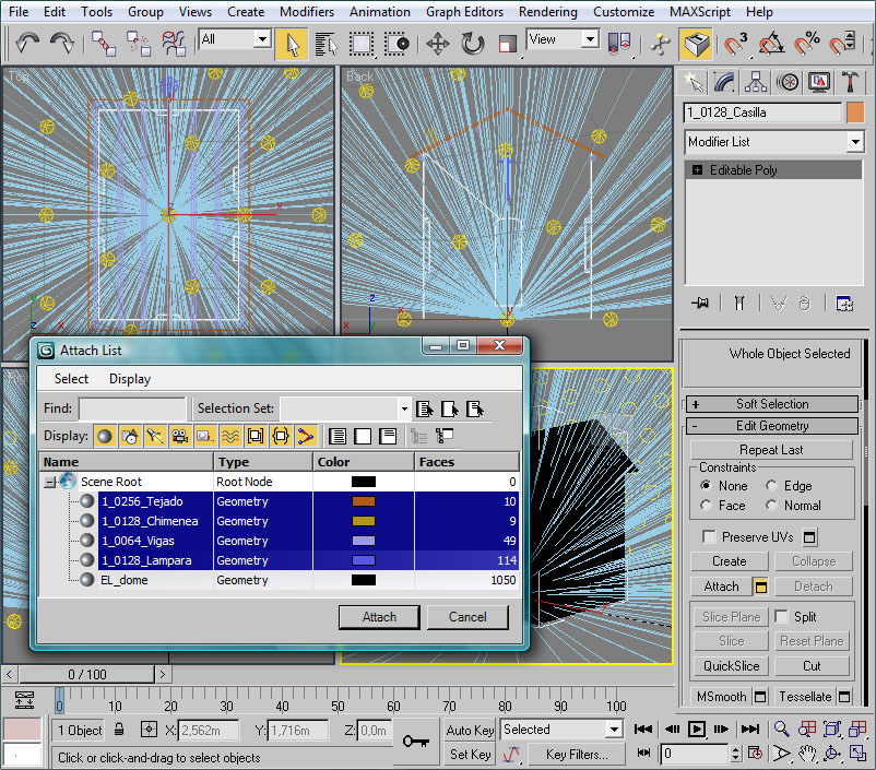 Ahora que ya tenemos los dos elementos de la casilla para sus respectivos LODs, ocultaremos, tal como hemos hecho antes, el LOD lejano 2_1250_Casilla, dado que este elemento ya tiene la malla que queremos. Nos dejaremos visible el LOD cercano 1_0128_Casilla para trabajar en él e incrementar su detalle como corresponde a su visión de cerca.