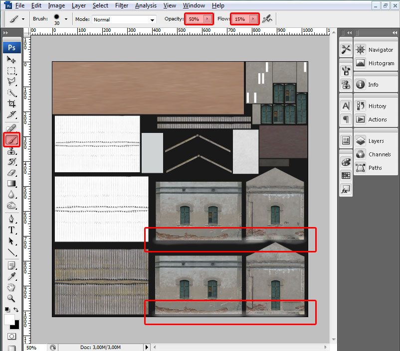 Con la textura así tratada podemos proceder a guardarla con formato .ACE, y le daremos el mismo nombre que la textura base, pero con el sufijo "_wi", es decir: "ES_Casilla_wi.ace". El motivo de tal sufijo es para indicarle al simulador que esta textura deberá sustituir a la original cuando la época del año sea invernal (ver el tratamiento del simulador a los Grupos de Texturas).