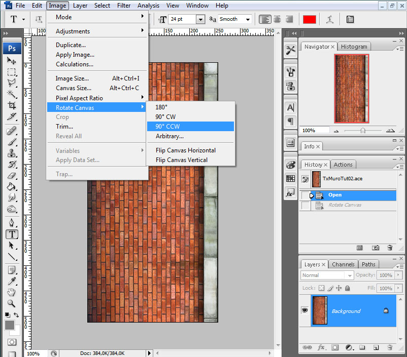 textura en Photoshop el mosaico se lleva a cabo unicamente en la dirección vertical, razón por la cual la hemos girado 90º.