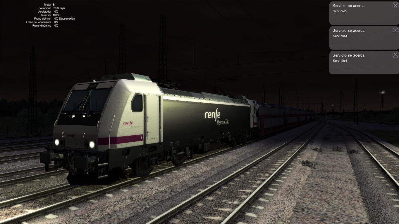 De momento aun esta en los talleres de construcción. Esta locomotora debido a la actualización del simulador, esta en proceso de pruebas: luces, agua en los cristales, movimiento de cabina..etc..etc.