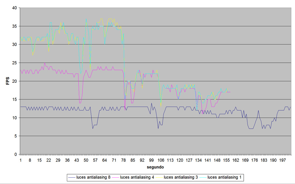 En el citado escenario, ajuste comno ajuste el antialiasing, los fps ni se inmutan, no pasan de 14, aunque pongas el antialiasing a 0.