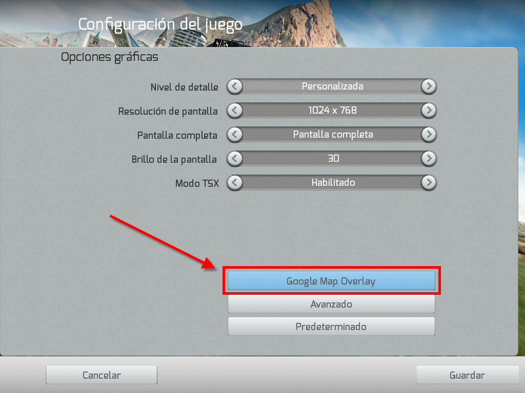 Inicia TS2014 y ve a "Configuración", después clica en "Gráficos". A partir de aquí ve a la nueva pantalla de configuración clicando en "Google Map Overlay".