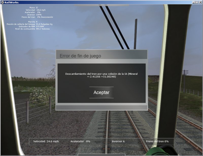 A pesar de que la actividad no me daba error, he repasado uno por uno los paths de los trenes y el que descarrilaba lo hacía porque iba a una vía ocupada por un consist de vagones, con el cual chocaba. Independientemente de que la señalización sea lo que es y tenga las meteduras de pata que tiene, no tengo excusa por cometer tamaño desaguisado. Cuando yo probé la actividad lo hice casi sin consists; luego, al terminar, me parecio un poco "pobre" y le añadí varios, sin darme cuenta de que iba a poner un obstáculo en la vía de un IA. Al no darme error el juego, lo dí por bueno. :?