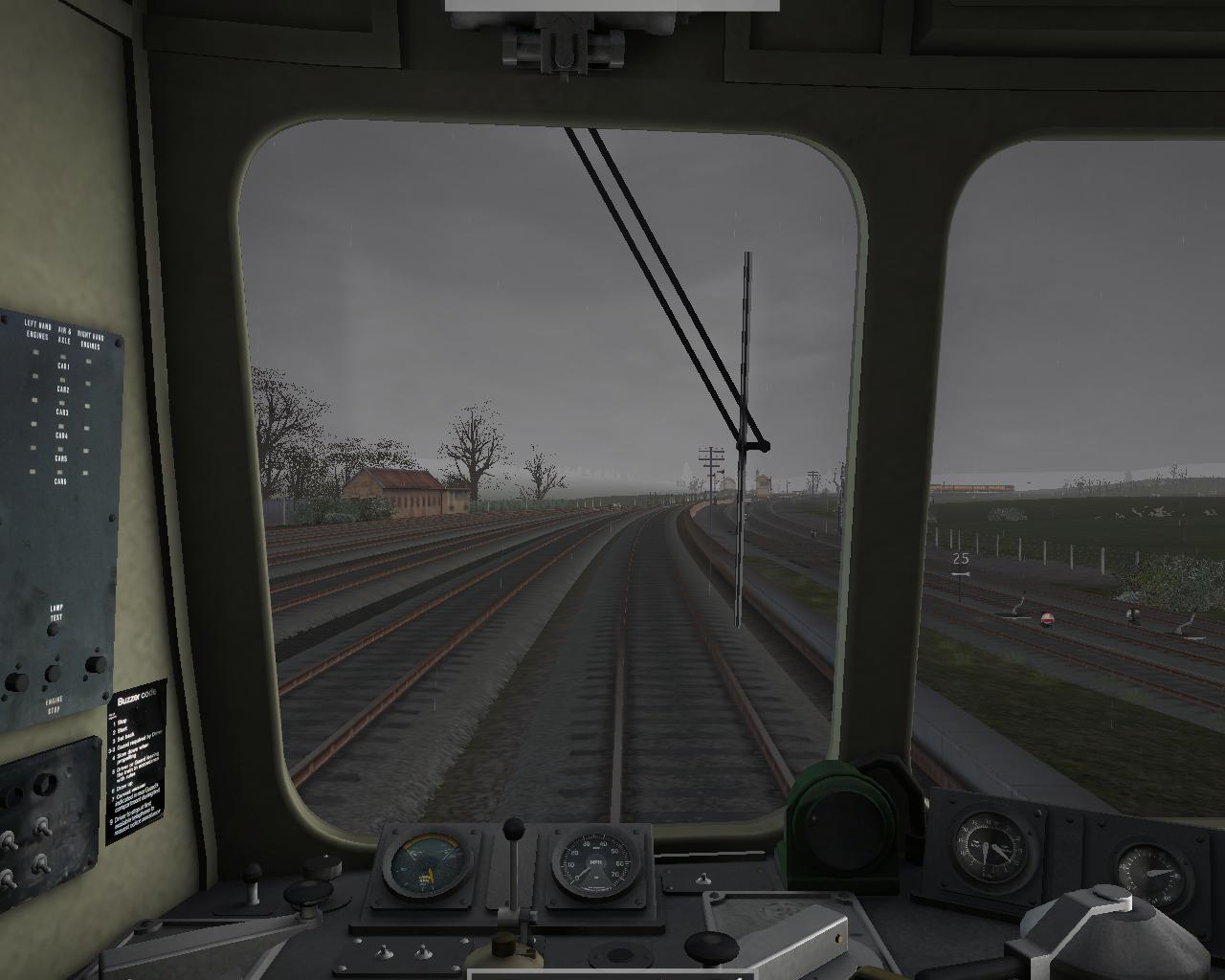 Por cierto, si me permites... Siempre suelo hacer algunos cambios en la vista de cabina del material motor, para no parecer que conduzco los trenes con la nariz pegada al cristal del testero. Mira a ver si te gusta la vista desde el asiento del conductor con estos parámetros