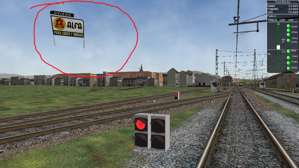En la estación de Oviedo, entrando desde Gijón, aparece un cartel de ALFA bastante elevado flotando. A la izquierda de la vía.