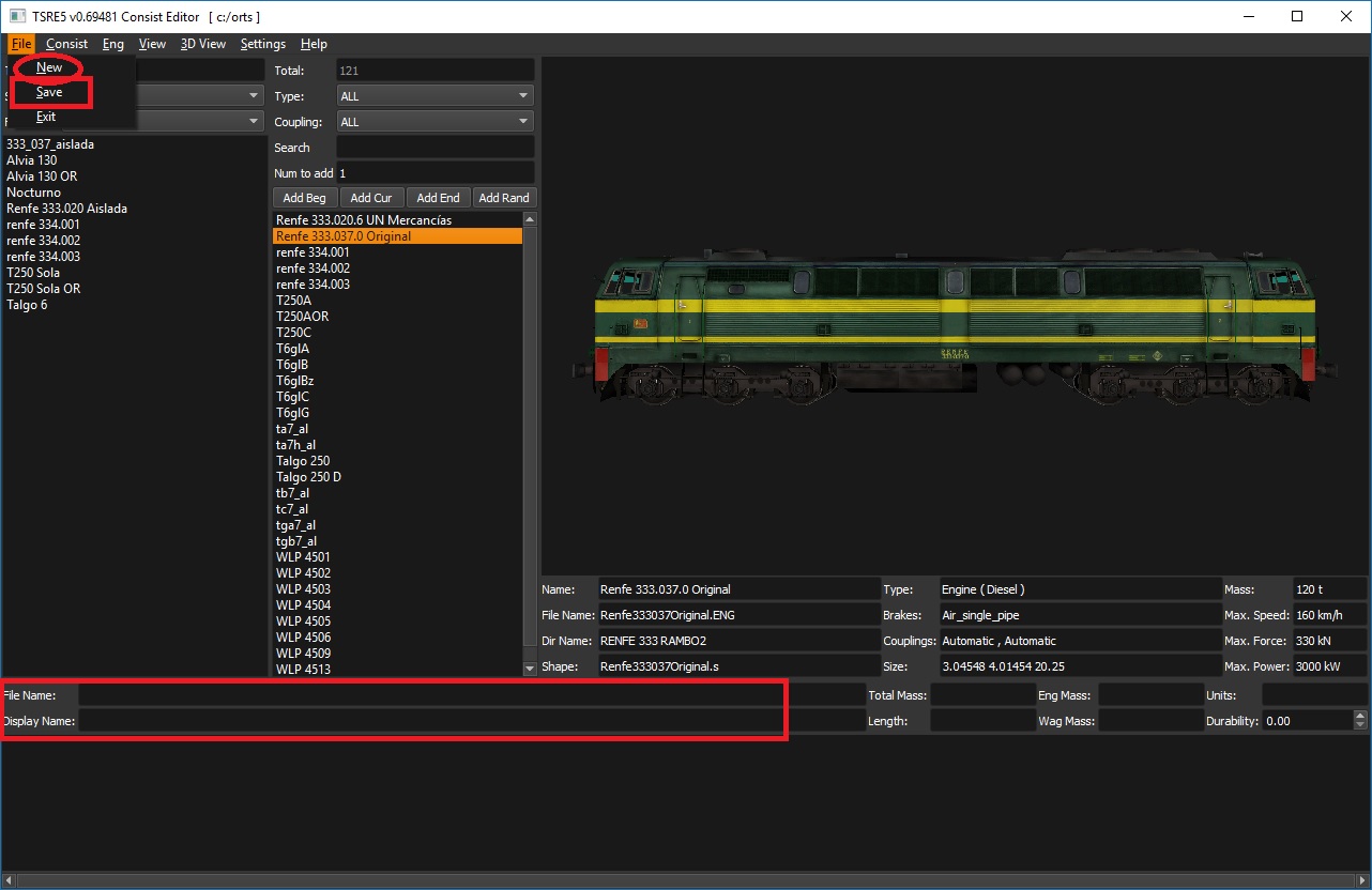 Creo que el problema que tienes es que entre MSTS/OR y TSRE5 el trasvase de Trainset y Consist NO es automático. Por ello cada descarga nueva de un vehículo en MSTS/OR tienes que copiarlo a TSRE5 y por supuesto cada creación de una composición en TSRE5 hay que copiarla a MSTS/OR.