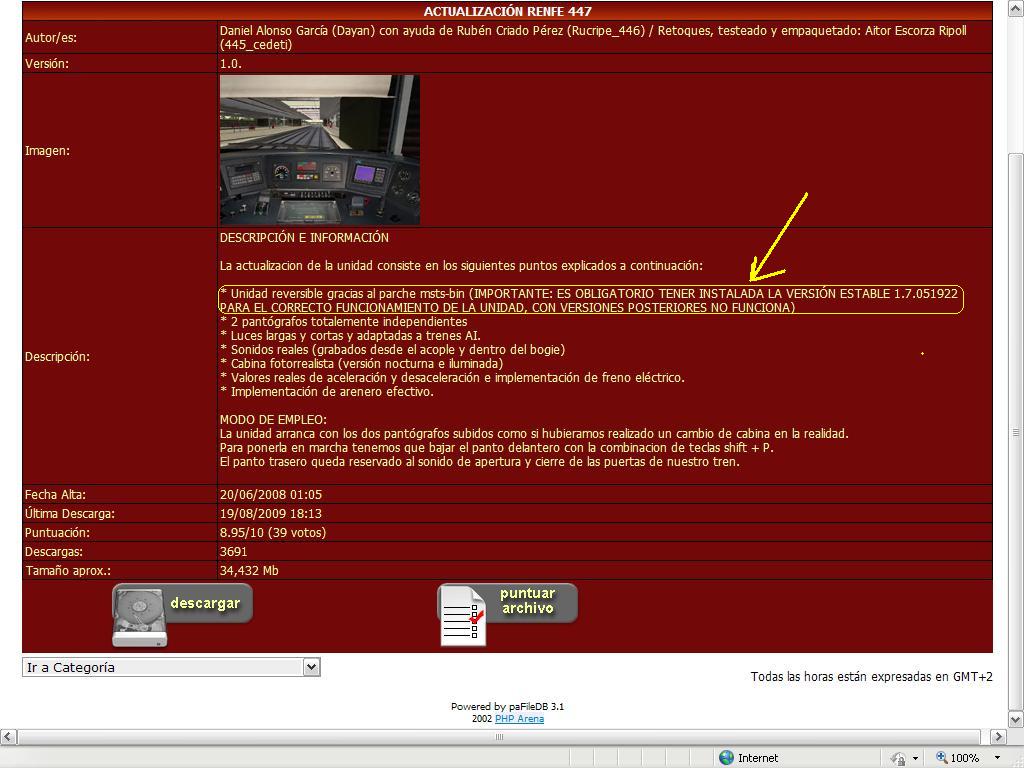 Como bien indica en la actualización en su página de descarga es imprescindible tener instalado el parche MSTS Bin versión estable (1.7.051922):