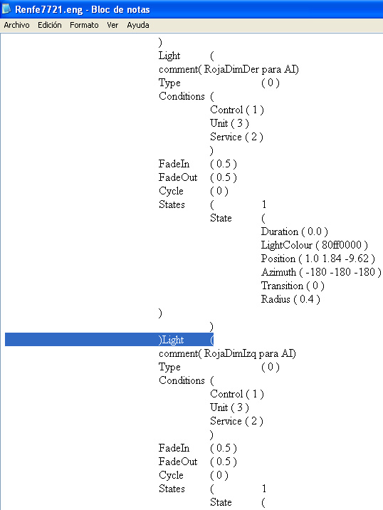 444.518 escribió:Los archivos de código de MSTS nunca deben abrirse ni editarse con el Bloc de notas, se debe usar siempre un editor apropiado o el 'Notepad' como recurso mínimo.