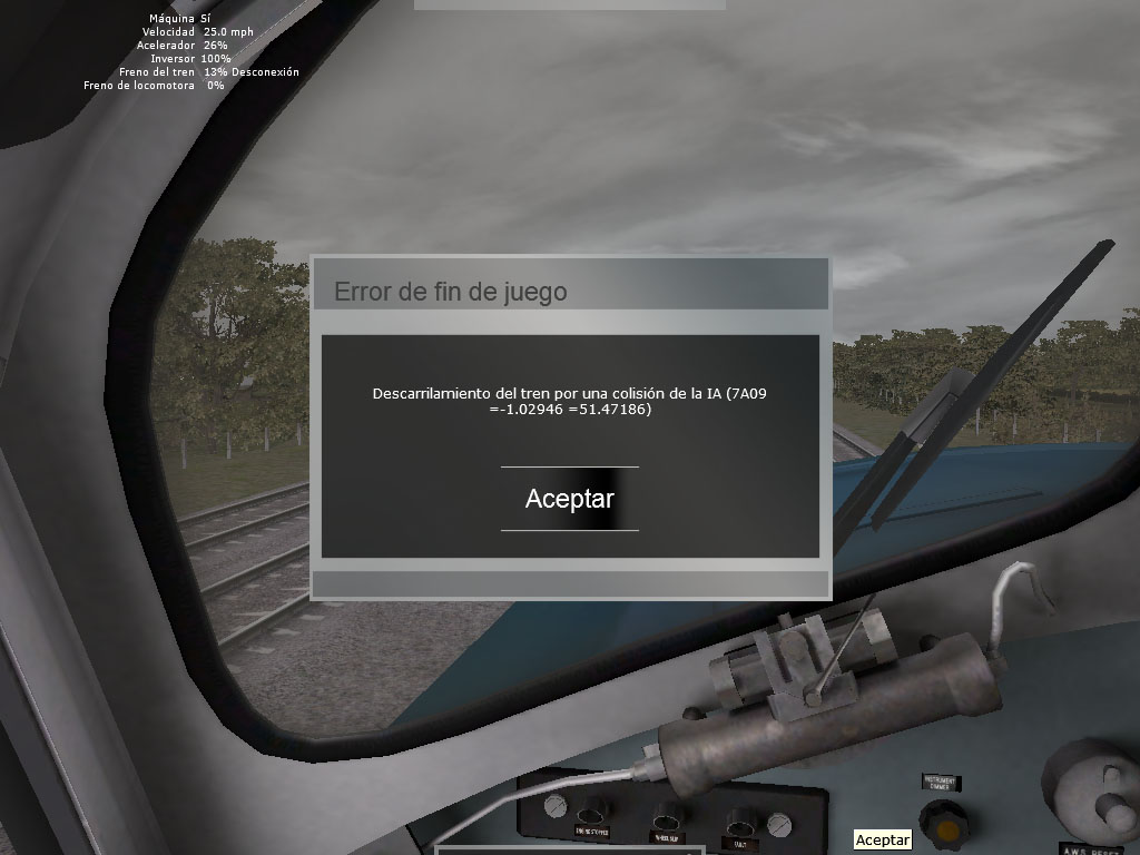 Ya he solucionado lo del descarrilo del mercancías IA: tras grabar el escenario antes del mensaje de error, al poco de cruzarme con un InterCity a pocas millas de Twyford, he vuelto a cargar el escenario y el problema ha desaparecido