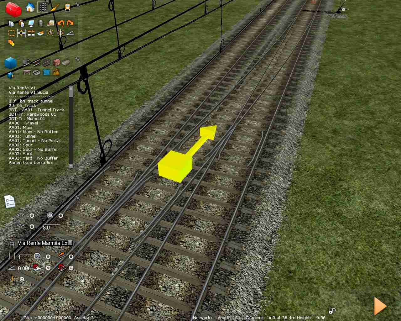 Hay otro sistema para solucionar el problema de los corazones de los cambios. Cuando estos se han construido con la herramienta que permite definir la rampa (distinta de la de pegar la vía al terreno).