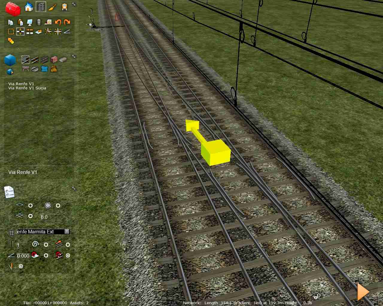 Abro este hilo para comentaros un pequeño descubrimiento con el que me topé por casualidad. Como ya hemos hablado anteriormente sobre las vías la entrevía 'normal' de Adif es de 4 metros, siempre que sea en líneas para velocidades <=160, pero el RW digamos que es un poco caprichoso con entrevías estrechas, produciendo errores en los corazones y al realizar desvíos dobles. Pues bien, trasteando con una ruta de pruebas donde hago todo tipo de combinaciones de vías descubrí por casualidad que usando la herramienta de pegar la vía al terreno no sólo no aparece el error en los corazones, sino que no pone ninguna pega al crear aparatos de vía unos detrás de otros, cosa que sin usar esta herramienta no se puede conseguir si no es con entrevías superiores. No le encuentro la lógica a esto pero funciona, que es lo importante. En las vías de Camber con la entrevía normalizada a 4 metros se puede hacer de todo y sin problema alguno usando esta herramienta, sin embargo las de Pere sí que dan algún problema en desvíos dobles (será cuestión de modificar algún valor). La forma de proceder sería plantar la vía general, pegar el terreno a la vía y para terminar plantar el desvío con la herramienta pegar al terreno (al estar ya pegado a la vía la que pongamos seguirá el mismo patrón que las generales) y listo.