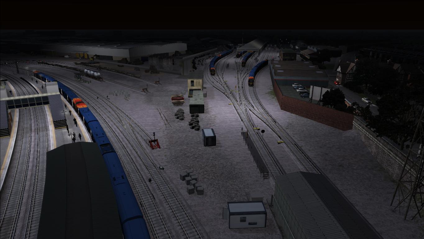 Este escenario es nocturno y, sinceramente, no se ve ni un pimiento en las estaciones ni en las zonas de operaciones. Experimentando con luces que pueden usarse en escenarios sin necesidad de editar la ruta, he dado un poco de luz a la actividad.
