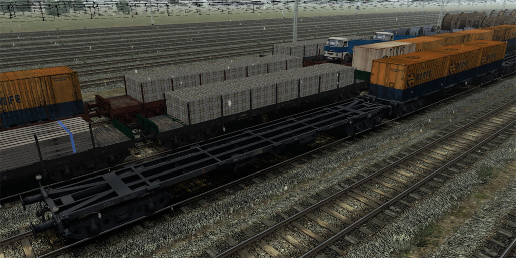 Para finiquitar las mmq, llevo una temporada trabajando con contenedores varios, y me dí cuenta que había algún problema de dimensiones en los contenedores de las mmq. Para ajustar plenamente los packs de 1,2 y 3 contenedores (aunque las mmq sólo tendrán packs de 3) he estado trabajando en la exportación y mejora (añadiendo elementos nuevos) de otras plataformas, las mmc1, originales de Adrián Guerrero (R_E_N_F_E) disponibles para Trainz, con el objetivo de asegurar que los contenedores encajen en los pivotes correctamente y poder aprovechar las cargas entre todos los modelos de plataforma.