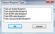 | - | Desplegamos el apartado '''Train Brake Assembley''' y pulsamos el botón ''Insert First''. De la selección que se nos abre elegimos ''Train vacuum brake blueprint''. | + | Desplegamos el apartado '''Train Brake Assembley''' y pulsamos el botón ''Insert First''. De la selección que se nos abre elegimos ''Train vacuum brake blueprint'', dado que nuestro vehículo irá dotado de freno de vacío. |