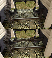 Bastará con volver a exportar el blueprint (no es necesario añadir ninguna información nueva) e ir al juego a observar el aspecto actual del vagón, viendo que, como en la imagen adyacente, la sombra se proyecta sobre el pequeño andén de tierra.