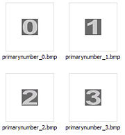 Necesitaremos también un juego de texturas denominadas primarynumber_##.bmp donde ## indica un número de orden de un dígito de la matrícula.Estos archivos se usarán para texturar los polígonos que recibirán los números dinámicos de la matrícula, y su contenido es intrascendente, pero su nombre determina cual de los caracteres de la matrícula se ubicará en cada uno de dichos polígonos.