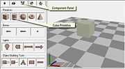 Creamos un nuevo cubo seleccionando del Component Panel la primitiva "Cube" y arrastrándola hasta algún lugar de la escena.En el Scene Hierarchy Panel editaremos el nombre del nuevo elemento para llamarle "Columna", y a su grupo le llamaremos "1_0500_Columna". Como se describe en el artículo Consideraciones generales de creación en RS con este nombre el nuevo elemento tendrá un LOD que será visible sólo hasta los 500 metros, miestras que recordemos que el muro lo será hasta los 1000 metros. He escogido distancias diferentes para ver la aplicación de esta característica de LODs en RS, pero podrían ser ambas cualesquiera distancias que nos interesen.