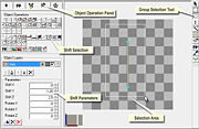 Para garantizar que seleccionamos todos los puntos del objeto cambiaremos perspectiva de la vista pulsando con el botón derecho del ratón en cualquier punto de la escena para mostrar el menú contextual, del que seleccionaremos View > Orthographic > Top para tener una vista cenital del objeto. A continuación activamos la herramienta Group Selection Tool y pincharemos y arrastraremos en la escena con el fin de crear un área de selección que rodee completamente el muro. Se remarcarán los puntos del objeto indicando que están seleccionados. Con todos los puntos del muro seleccionados abriremos el Object Operation Panel y seleccionaremos la herramienta Shift Selection, que nos permite desplazar y/o rotar en cualquiera de los tres ejes una cantidad deseada, en metros para los desplazamientos y en grados para las rotaciones. Desplazaremos el muro en el eje Y 1,25 metros, la mitad de su altura, para ubicarlo justo sobre el nivel del suelo (Valor 0 en el eje Y), y desplazaremos el eje Z 2,5 metros, la mitad de su longitud, para que el frontal del objeto se sitúe también en el valor 0 del eje Z.Aplicaremos los valores a los dos ejes: