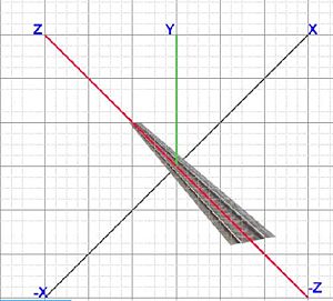 Como observamos la vÃa principal de nuestra ruta pasa por el eje Z. Esto nos dará una visión mucho más clara a la hora de orientar nuestros objetos y darle forma. Cada uno de los pequeños cuadros que vemos en el dibujo representan 1 metro. La creación de objetos se basa en vértices. Por ejemplo: Un cuadro tiene 4 vértices, por lo tanto tendremos que definir 4 vértices.