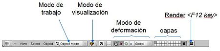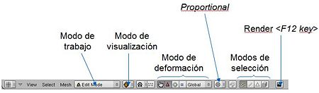 Para trabajar en Blender existen multitud de modos de trabajo. Para el moldeado y texturado en general nos interesan solo dos de los modos, puesto que los demás son más especÃficos para otros tipos de moldeado y animación. Para la transición entre cualquier modo (por defecto Object Mode) y Edit Mode, bastará con pulsar <tabulación>.