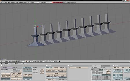 El modificador array permite simular vectores o matrices matemáticas cuadradas aplicadas al modelado. El efecto es el de ir repitiendo el mismo objeto cada una distancia fijada respecto al centro del objeto o respecto al centro de coordenadas.