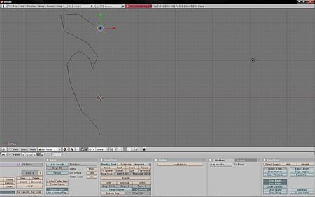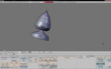 Blender permite crear objetos de revolución con un eje marcado y en tantos pasos como se desee a partir de un perfil prediseñado a partir de vértices y aristas, jamás caras. Para ello, crearemos la figura más simple en Blender, que es el plano y suprimiremos los vértices superiores, para proseguir con dos vértices y una sola arista. Seleccionaremos el vértice inferior izquierdo y desplazamos el ratón en el púnto donde deseemos crear el nuevo vértice. Usamos <Ctrl> + <Botón derecho del ratón> y nos aparecerá un nuevo vértice enlazado con una arista al nodo de origen. Proseguimos hasta crear el perfil a revolucionar.