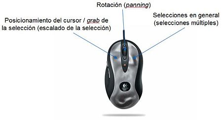 - Boton izquierdo: posicionar cursor o grab/ shift + ~: Escalado en la selección.