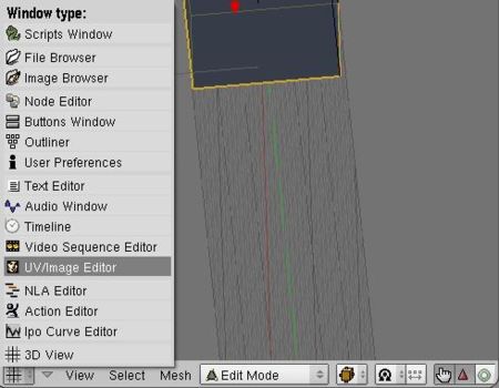 Usamos la opción Split Area y dividimos la ventana. En la nueva ventana, usamos el tipo de ventana UV Image Editor. Hasta ahora solo habÃamos usado el tipo de ventana para vista en 3D, con lo cual, se muestra como seleccionar el tipo de ventana: