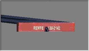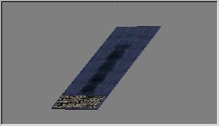 Aplicamos la textura, teniendo la plataforma como objeto activo, mediante Part » Textures (o bien pulsando la tecla [F4]) lo cual nos abrirá una ventana donde especificar las mismas. En la vista Back pulsamos el botón [Browse] para indicar el nombre del archivo a usar como textura: comprobamos que nos hallamos en el subdirectorio Textures y seleccionamos el fichero ESRN130-2124A.BMP. Se nos abre una nueva ventana para indicar el origen y dimensiones de la zona a usar como texture para el lado Trasero (Back) de la pieza. Podemos seleccionar la zona con el ratón o bien indicar los parámetros de la misma: X Crop=165, Y Crop=0, X Size=347, Y Size=16. Repetiremos la acción para los otros lados de la pieza con los siguientes parámetros: